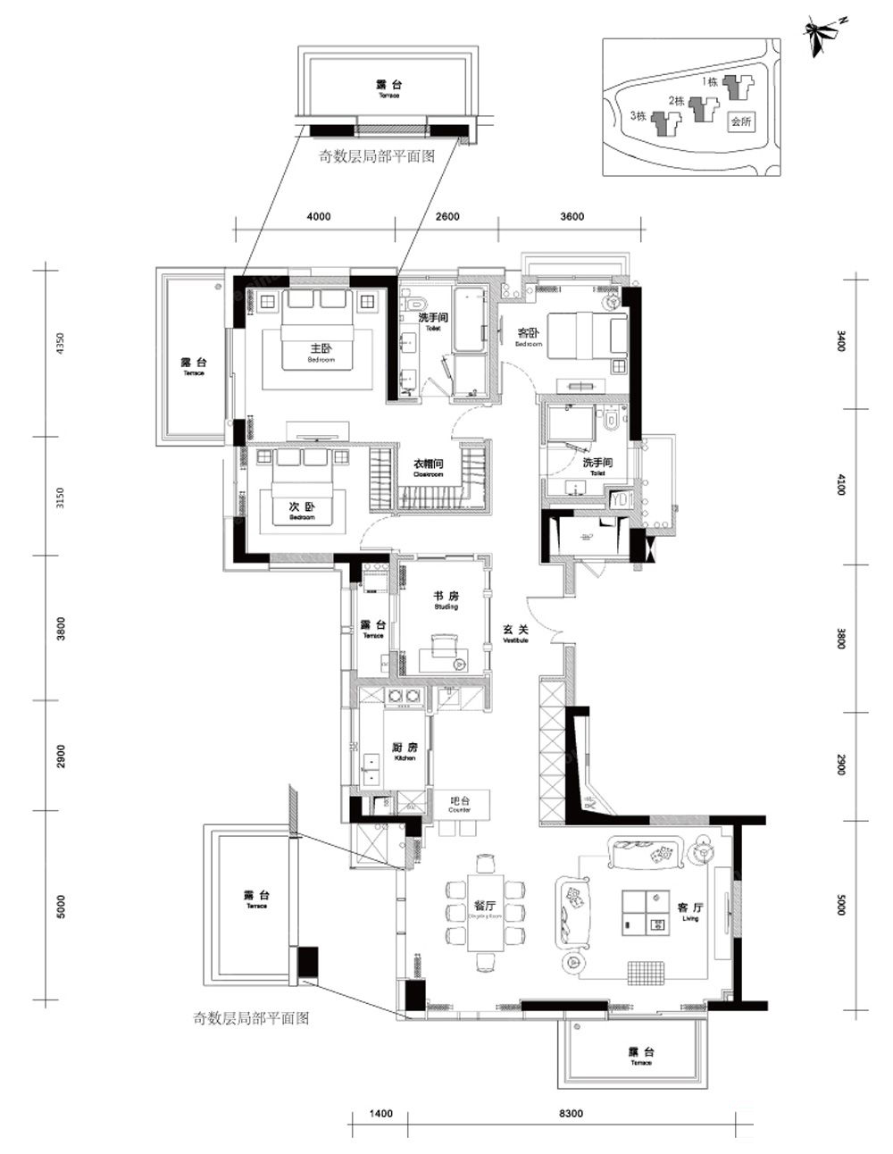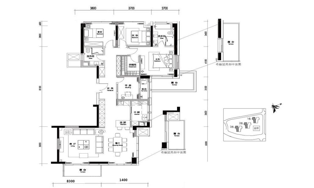 户型主要以175㎡四房为主,共150套,另有3套516平米的顶楼单位和6套370平米的底层townhouse,专为159位尊贵业主量身打造。
